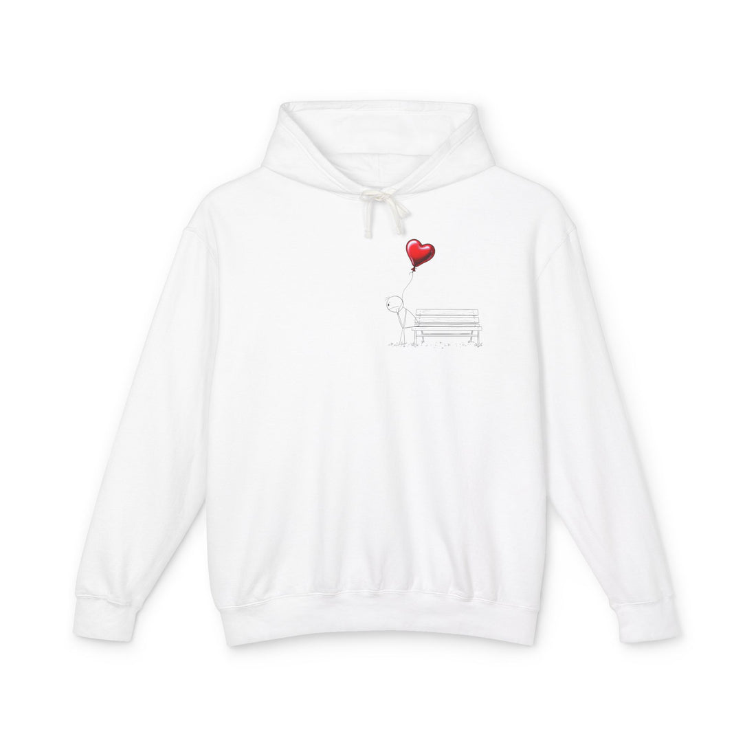 Guy the Stickman on a Bench with Red Balloon Unisex Lightweight Hooded Sweatshirt