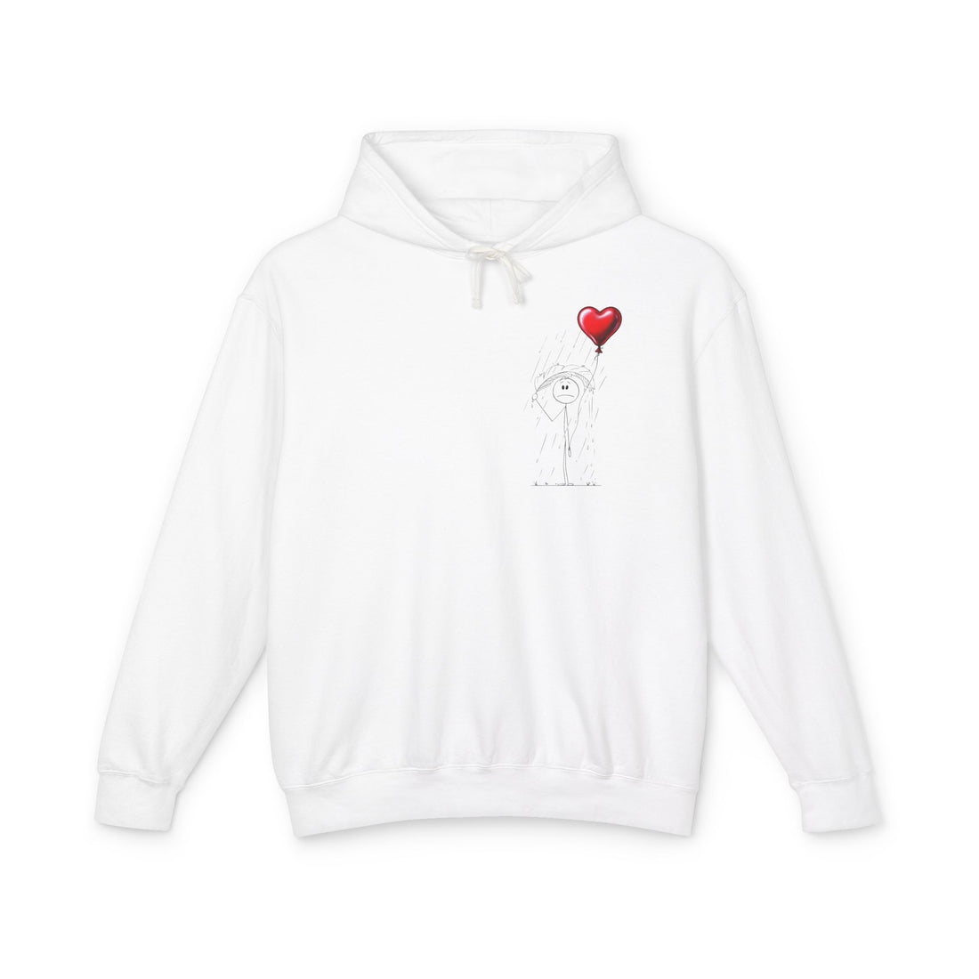 Guy the Stickman in the Rain with Red Balloon Unisex Lightweight Hooded Sweatshirt
