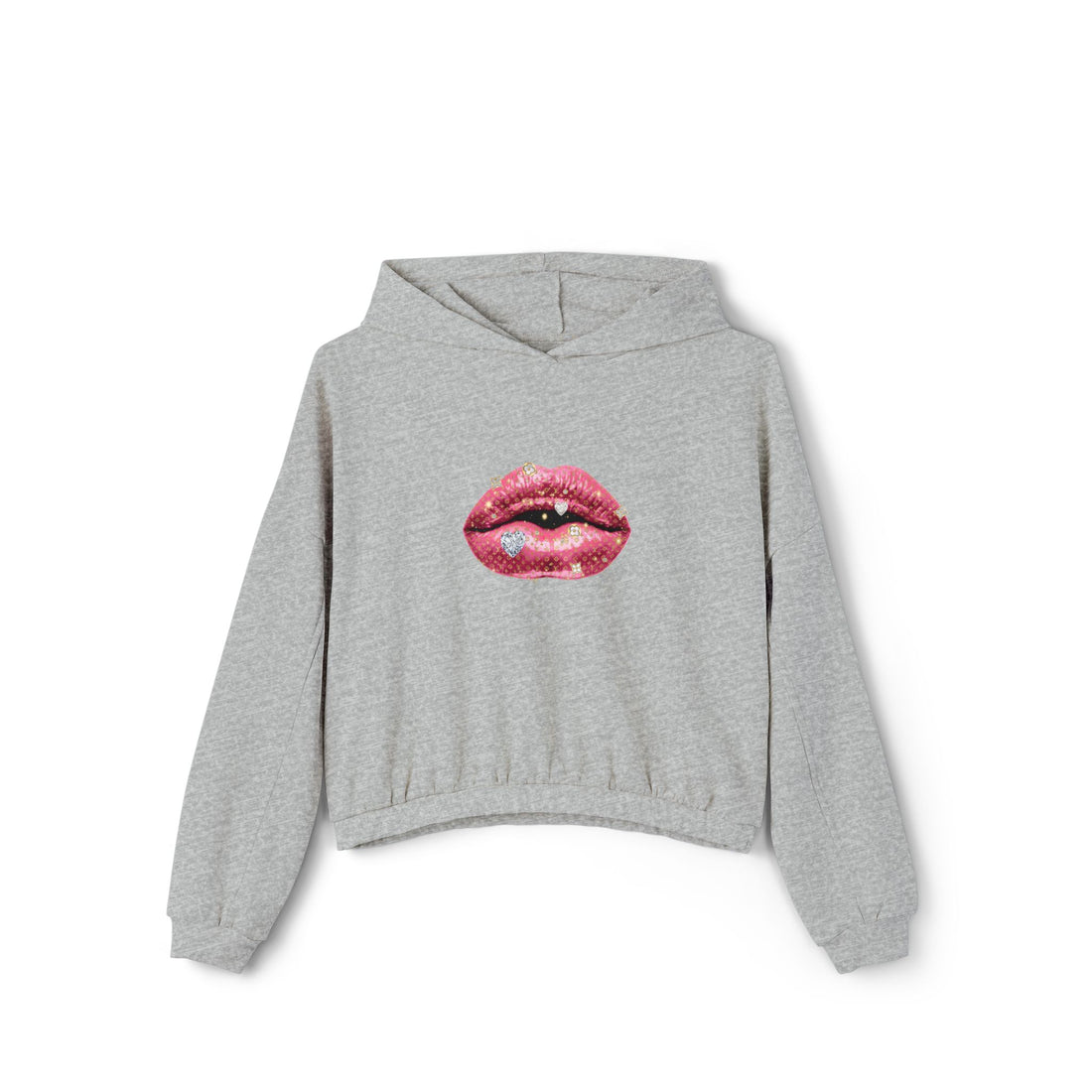 Designer Glam Sexy Red Lips II Cropped Hoodie