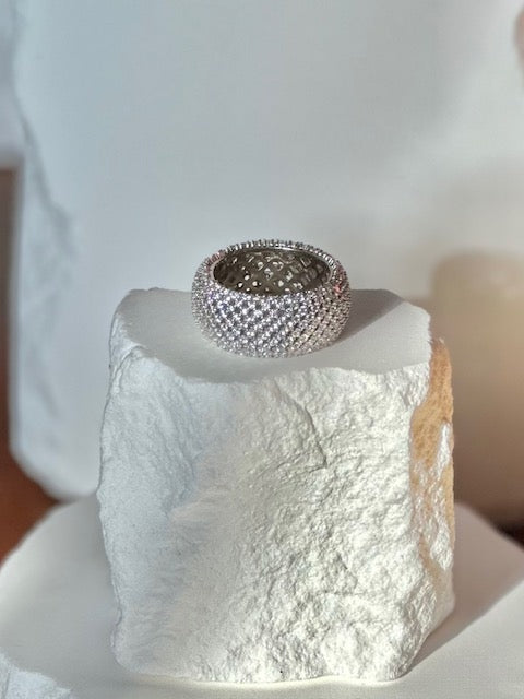 Pave wide band ring