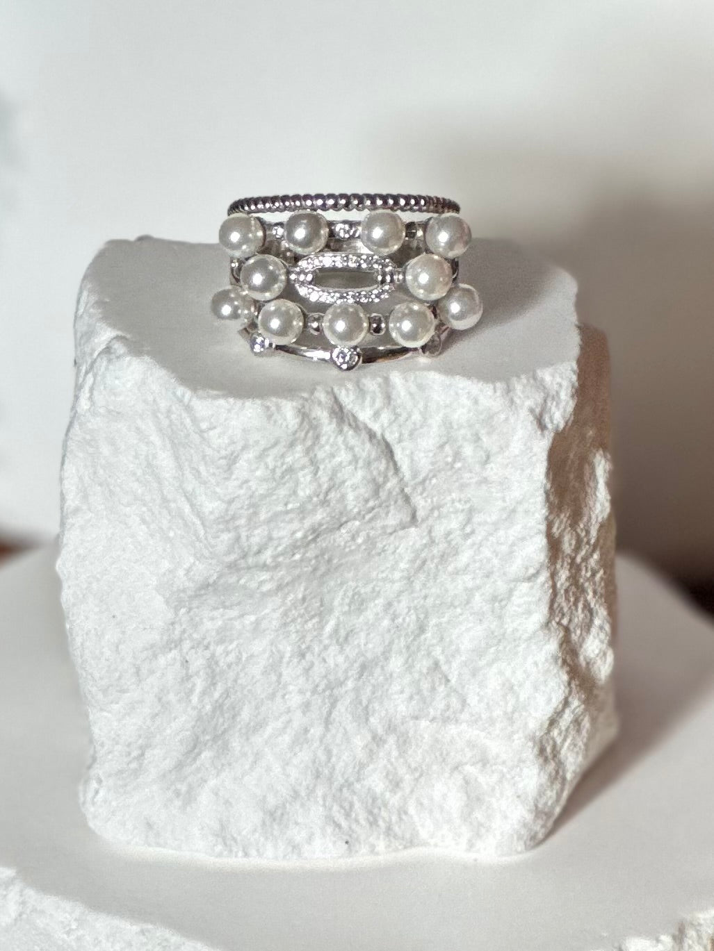 Multi Pearl Silver Ring