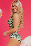 Green Dotted Mesh Plaid Patchwork High Waisted Bikini