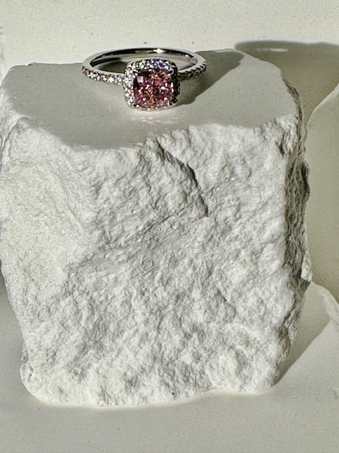 Pink topaz surrounded by cz diamonds