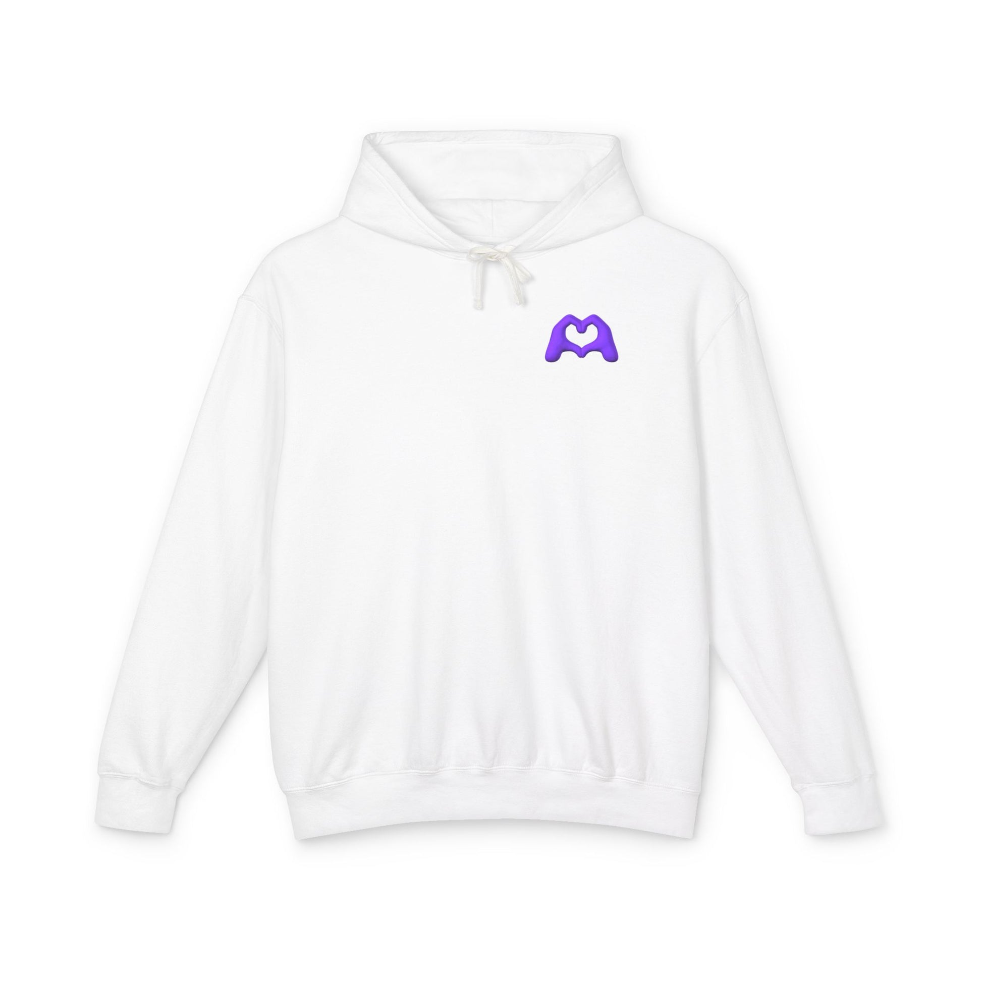 Violet Hand Heart Unisex Lightweight Hooded Sweatshirt
